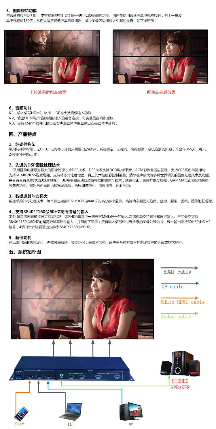 4、支持3840*2160@60HZ高清信號的輸入